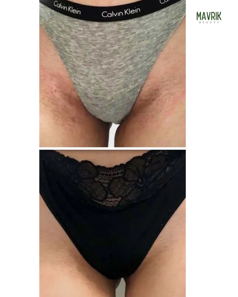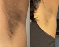 - Fades dark spots on face, underarms, thighs & bikini area