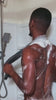 2. Lather & Scrub - Wet the towel and add your favorite body wash (optional - it works standalone too). Use the full 48" length to reach your back in sweeping motions. Focus on dry areas like elbows, knees, and feet with circular motions.